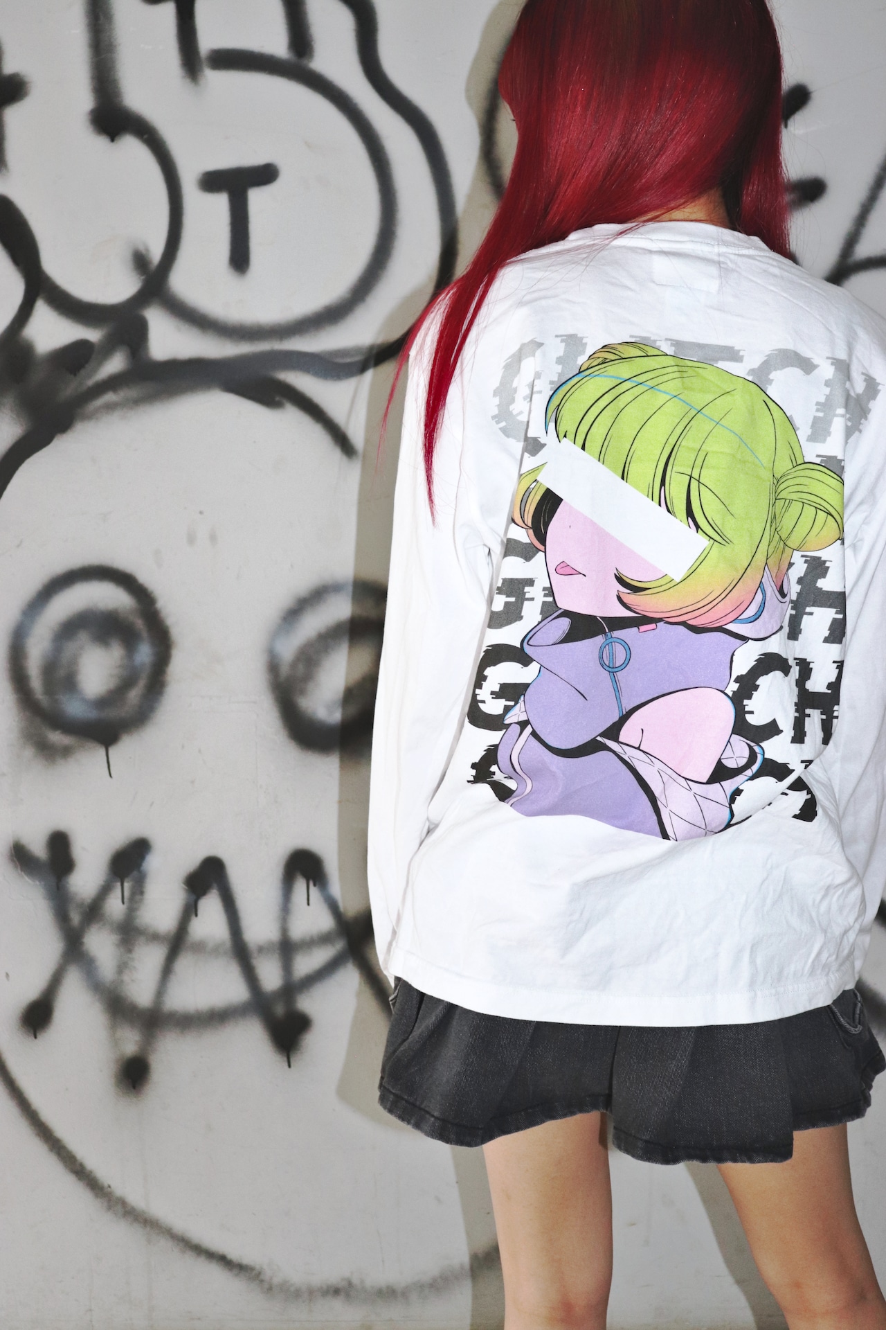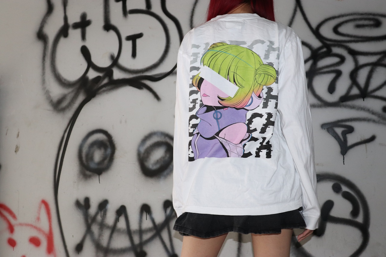 [Glitch] Long T-shirt - flagship white